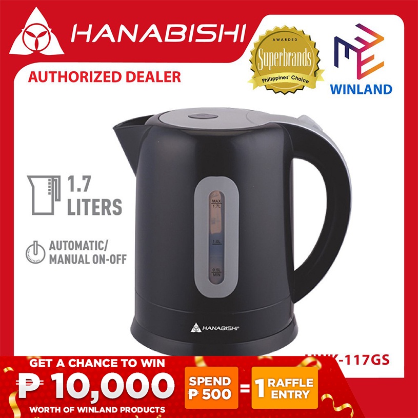 Hanabishi Original 1.7 Liter Plastic Water Heater Electric Kettle 2000W